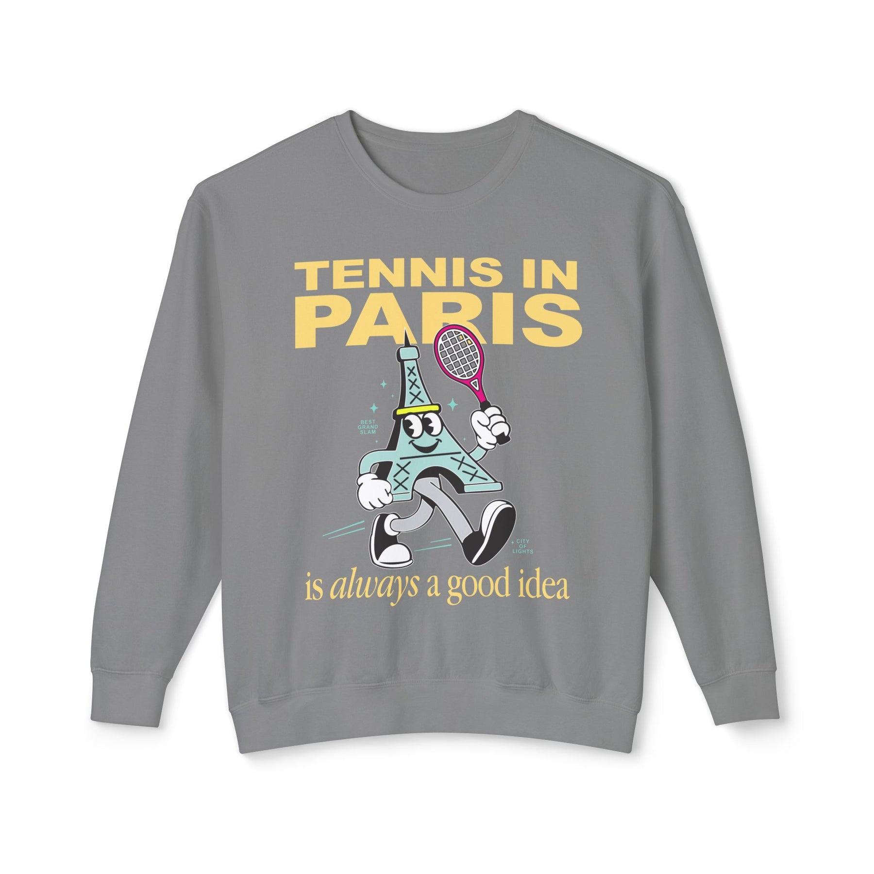 Serve major fan energy with this French Open Mascot lightweight sweatshirt — a wearable tribute to tennis joy, Parisian chaos, and vintage style.